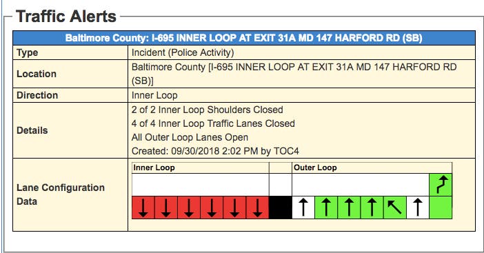 The inner loop of the beltway was temporarily shut down in the area of Harford Road/MD 147 so detectives could investigate the shooting. Traffic cameras showed drivers being forced to exit I-695 at Harford Road.