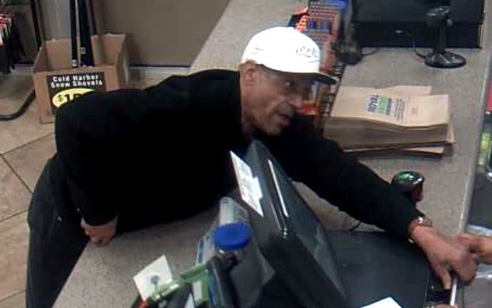 In Saturday's robbery at Royal Farms in Rosedale, police said Fleming implied he had a gun under his coat and threatened to shoot the cashier, who was trying to close the cash drawer after he paid for a pack of gum. He left with cash.