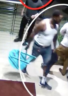 NOTTINGHAM, MD — Nearly one month after a man was stabbed and shots were fired on The Avenue at White Marsh, the Baltimore County Police Department released video from the incident. Police asked for help identifying three people in the video, including the suspected gunman.