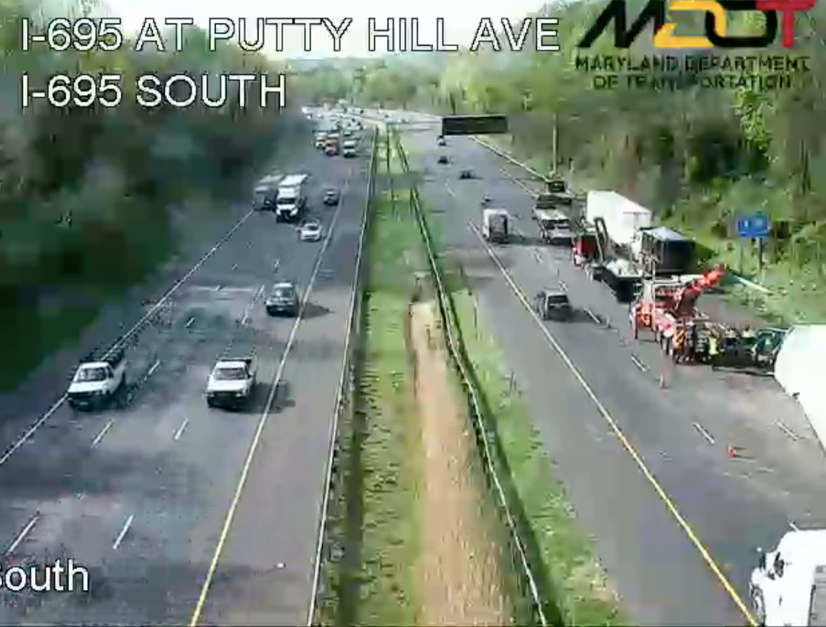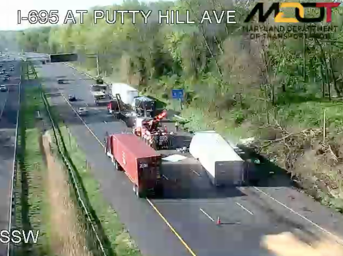 BALTIMORE COUNTY, MD — A tractor-trailer crash temporarily blocked traffic on Interstate 695 for drivers on the inner loop Friday morning. The crash happened before the morning rush hour, according to transportation officials.