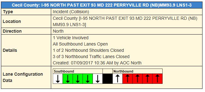Due to the crash on Sunday, I-95 was blocked to northbound traffic past Perryville for several hours, and drivers were advised to take US 40 as an alternate route.