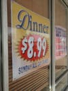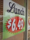 Prices: Otherwise, lunch is $6.49 except on Sunday, and dinner is $8.99. The dinner price is in effect all day Sunday.