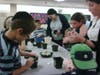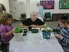 The young gardeners decorated plastic containers with foam stickers of snakes and flowers. Then they moved to the back of the room where they scooped handfuls of dirt and planted rooted pansies in the containers.