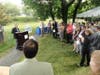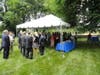 There, attendees—including about 30 of the company's staff members—were greeted by a lawn tent set out under a grove of trees. Underneath was a sheet cake and other refreshments. "Ooh," was the reaction as people approached.