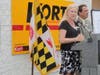 The ceremony at the was held in the parking lot at Reisterstown and Old Court roads, and featured three large advertising banners affixed to a partially demolished wall.