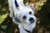 EDDIE (tan-and-white poodle-mix) — Eddie is a little more laid-back and reserved, but also more independent. He likes to curl up next to his foster mom on the couch, but will also leave her side to enjoy the soft, cushy comfort of his dog bed. He’s playful, loves food and squeaky toys, and is very sweet. He comes across as the more mature older brother, but still follows Bart everywhere and is a little more cautious around new people.