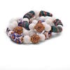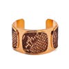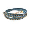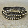 She uses non-traditional materials such as stingray, metallic leathers and lambskin. The stones and beads used in her designs come from as far away as Africa and India. She is constantly searching for interesting materials to use. Her latest bracelets are made with hand-painted beads from Ghana.