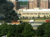 Photo of burning bus courtesy of @amro via Twitpics,taken from a vantage point in building overlooking I-270.