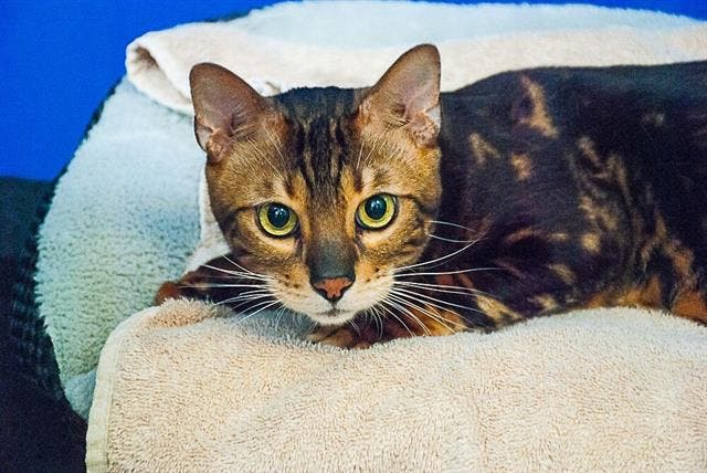 Sex, Breed: Neutered male, bl tabby Bengal.