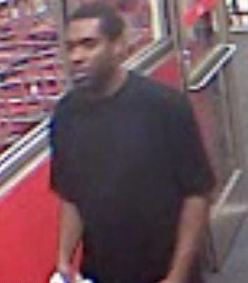 Image: Montgomery County Police Department; below, the police released this image Tuesday of an individual who allegedly used a stolen credit card to buy merchandise from a Rockville Target store (MCPD).