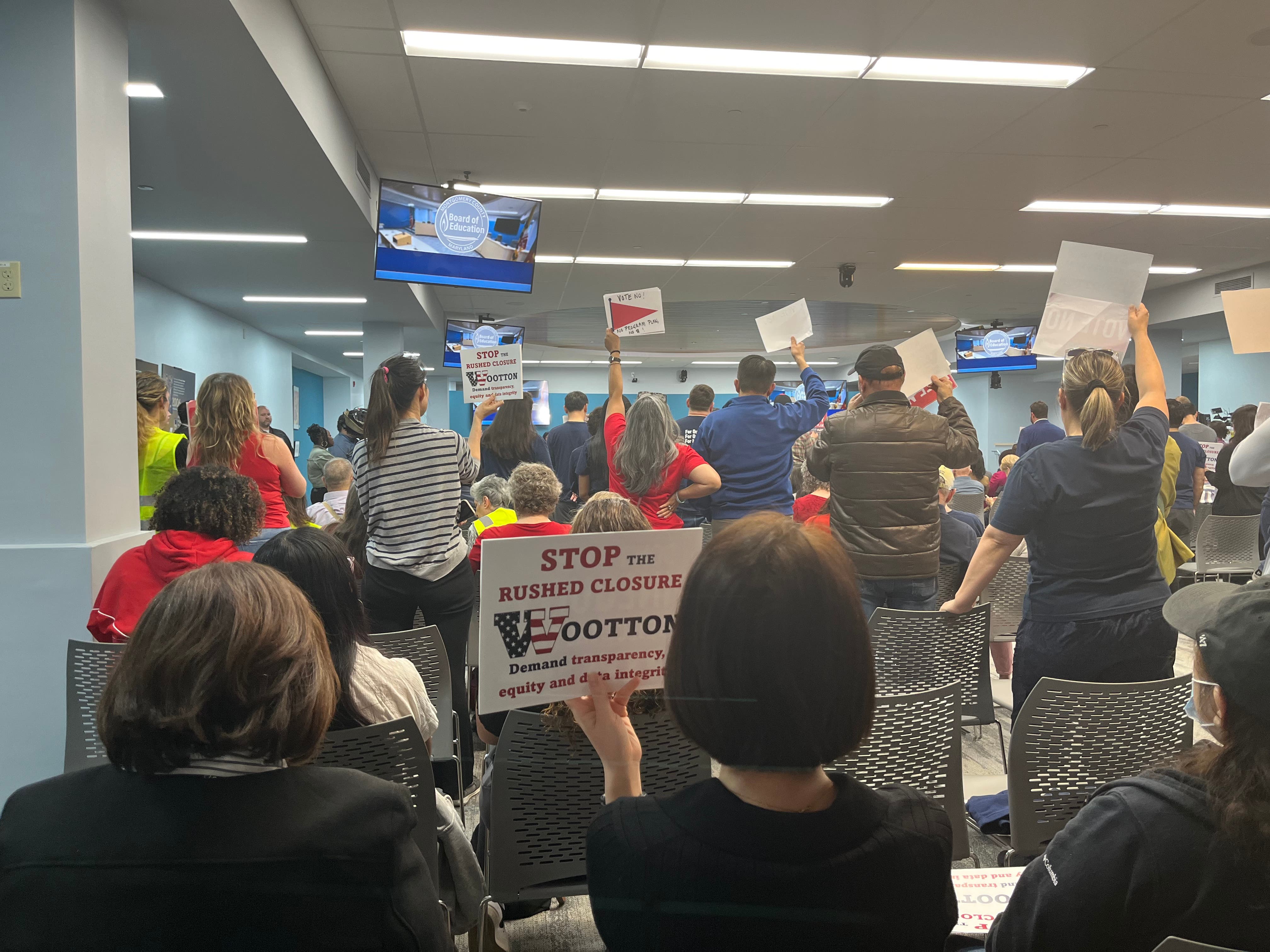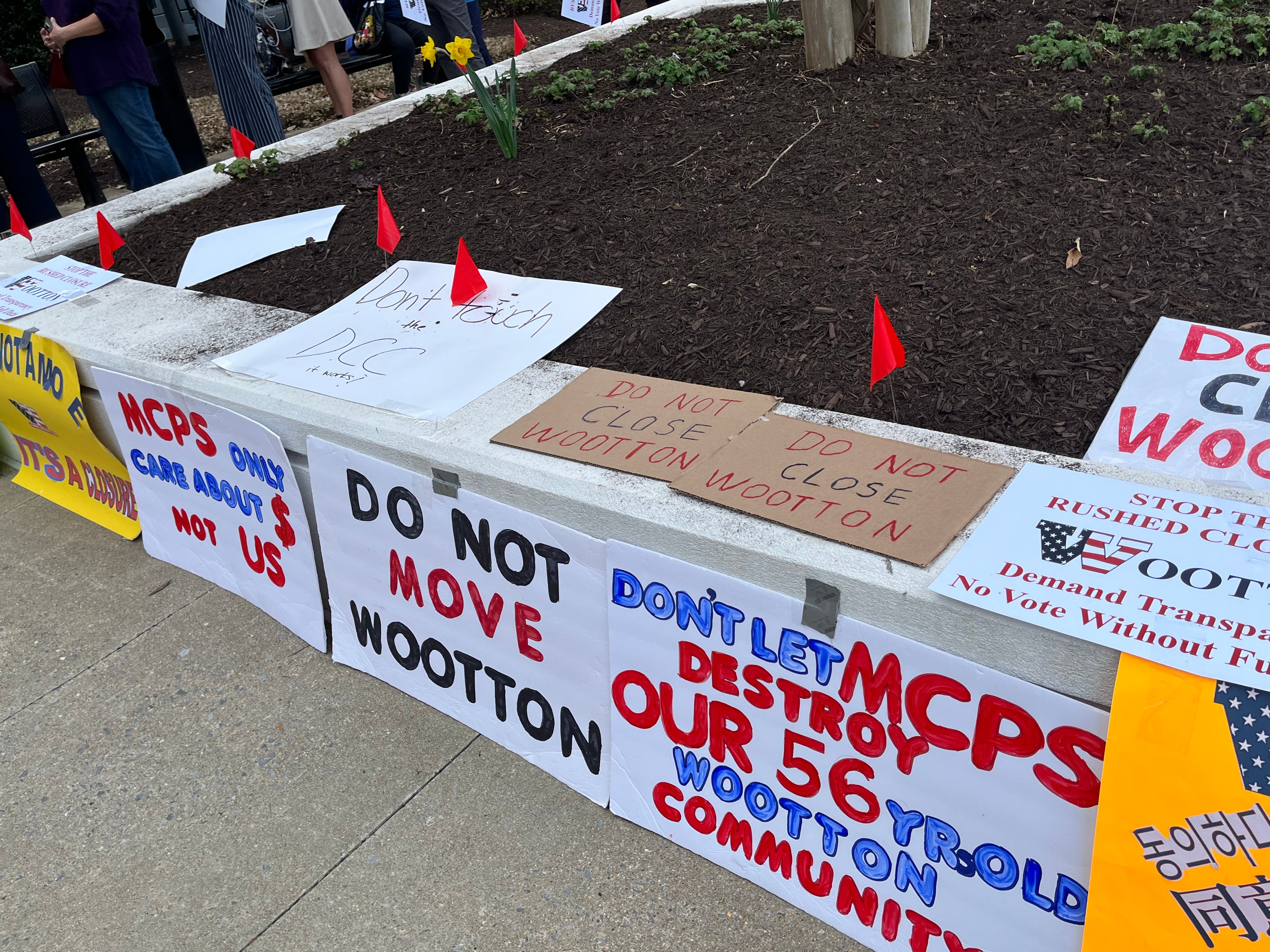 Many opponents held "Save Wootton" signs and occasionally shouted "no" in response to remarks by board members.