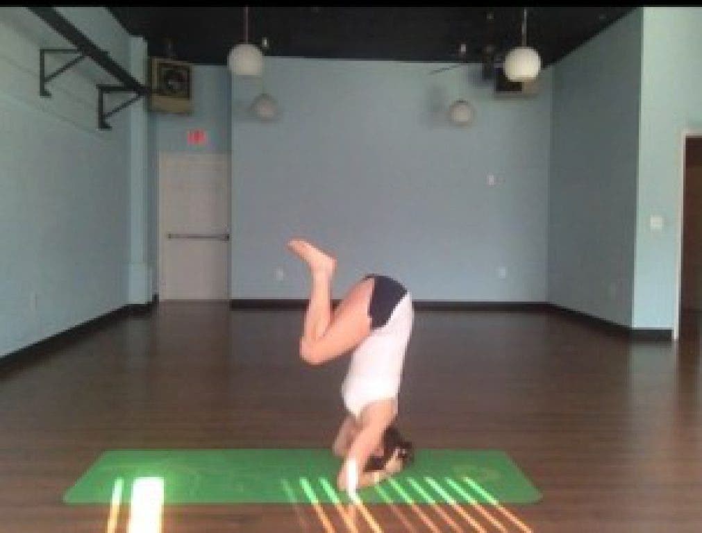 Tip: This can be a tricky pose for beginners and you want to avoid putting too much weight onto the neck and head when coming in and out of this pose. You should definitely start practicing this pose against a wall until you get comfortable with how it feels and figure out the proper weight distribution. On that same note, once you feel you have the balance, proper breathing and strength, don’t be afraid to move away from the wall– this is a big step, but you can do it!