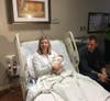 An ambulance crew arrived a few minutes after the birth. Jon had already wrapped the boy in his shirt and Amanda has snuggling him close when backup arrived.