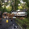 The fuel tanker overturned on Club House Road between Edwards Ferry Road and Elmer School Road in the Poolesville area, according to Pete Piringer, public information officer for Montgomery County Fire and Rescue Services.