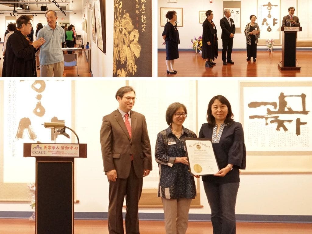 On May 4th, CCACC Art Gallery started celebrating Asian American Heritage Month with their latest exhibition, “Land of the Morning Calm”. The opening ceremony was held on May 11th from 2pm to 4pm. The ceremony started with Executive Director Chih-Hsiang Li giving his welcome remarks. The Gallery also invited general consul of Korea from the US Embassy, Dong-gi Kim, to say a few words. The Administrative Director of Governor's Commissions on Asian Pacific American Affairs & South Asian American Affairs, Christina Poy, also presented an award for Asian American Heritage Month to CCACC.