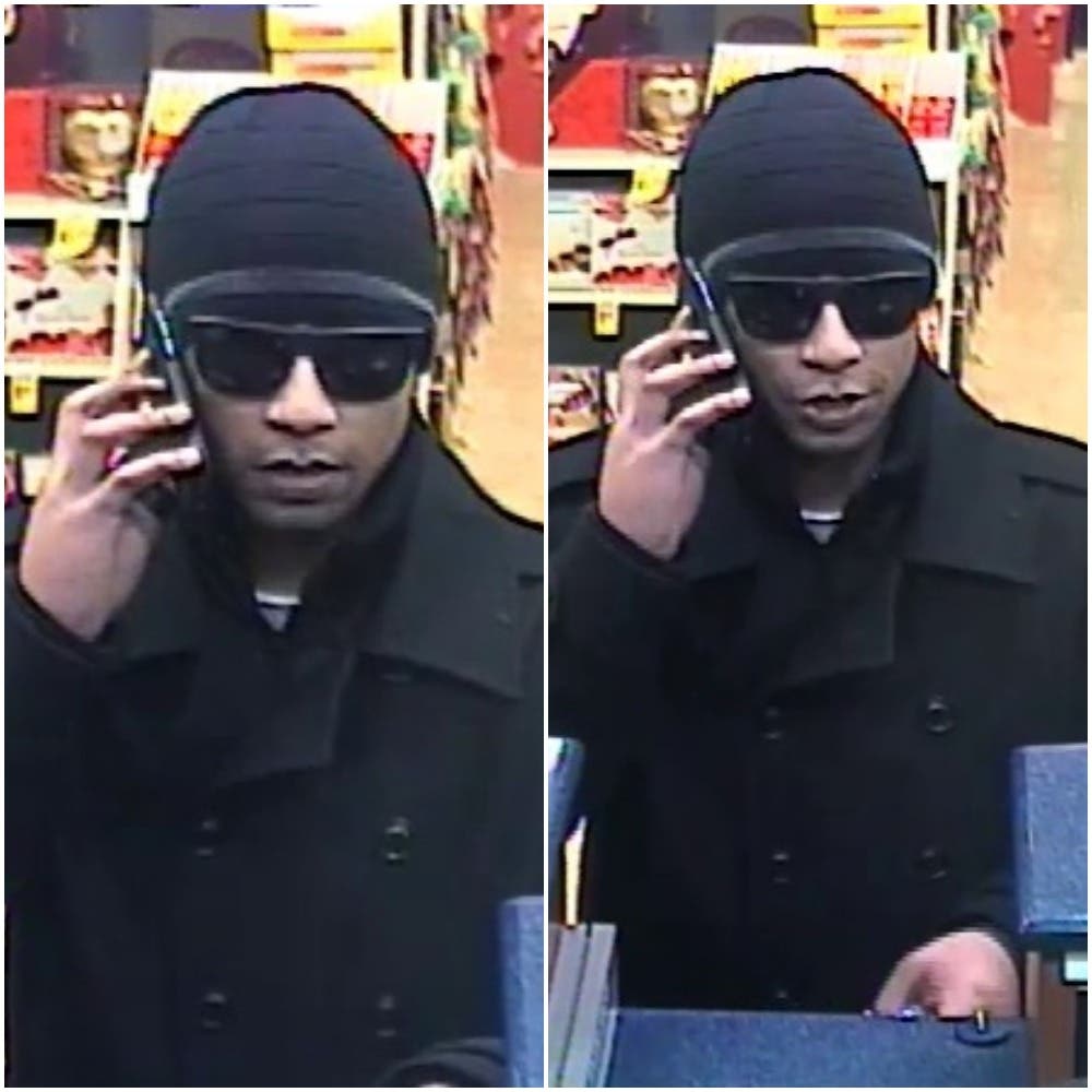 During both robberies, the suspect was wearing a hat and sunglasses.