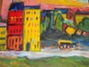 The show was juried by Cynthia Fischer, a Ph.D. student in art history at University of Virginia. Thirteen out of 15 artists made it through the jury process. First place goes to Ruth Ragan for her striking acrylic painting “High Houses in the Country,” inspired by Kandinsky. Honorable Mentions go to Doris Jouanett for an untitled watercolor of a golf course, Helmer Junghaus for an untitled colored pencil drawing of a fish, Guarina Huntress for an untitled oil still life and John D. Barnes for an untitled photograph of fireworks.