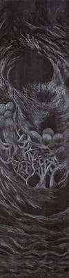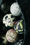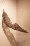 The fragility of her twig sculpture, "Tender," which resembles an empty nest, and the cocoon she builds around an assemblage of spheres symbolizing ideas for writing books, express the tension of interior and exterior personal negotiations.