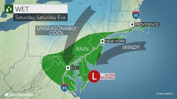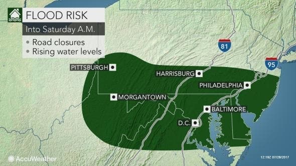 Enough rain can fall to cause flash and urban flooding. Small stream flooding is also possible as several inches of rain may fall on some locations, according to AccuWeather. This threat will be greatest from Philadelphia and Harrisburg, Pennsylvania, to Baltimore and Washington, D.C.