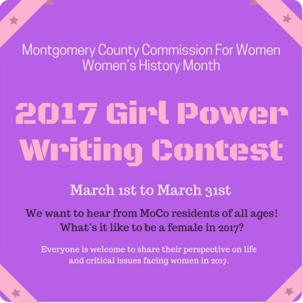 SILVER SPRING, MD — The Montgomery County Commission for Women is celebrating Women’s History Month in a unique way this year: by inviting all county residents of all ages to participate in the first annual Girl Power Writing Contest called “What’s It Mean to Be a Woman in 2017?”