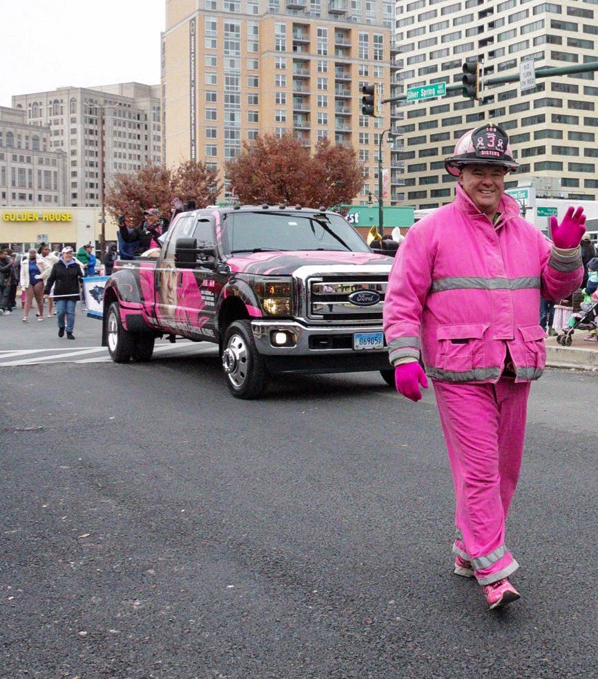 And when Emmanuel saw a man sporting a shark onesie in the parade (who was possibly paying tribute to the Washington Nationals and their fascination with "Baby Shark"), Emmanuel ran through the crowd to give him a hug.