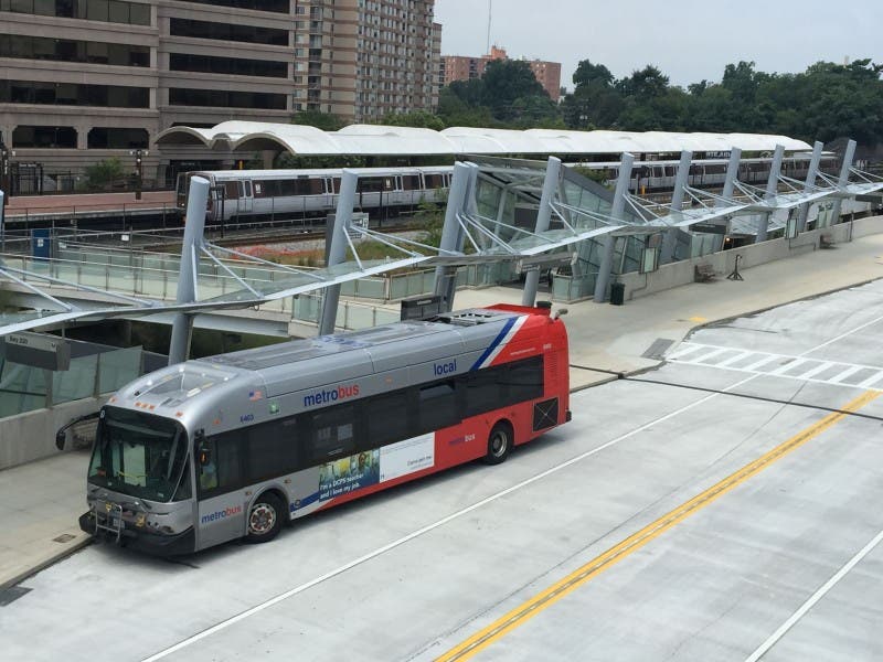 32 bus bays for WMATA Metrobus, Montgomery County Ride On, Van-Go shuttle, Inter-city Buses, and University of Maryland Shuttle