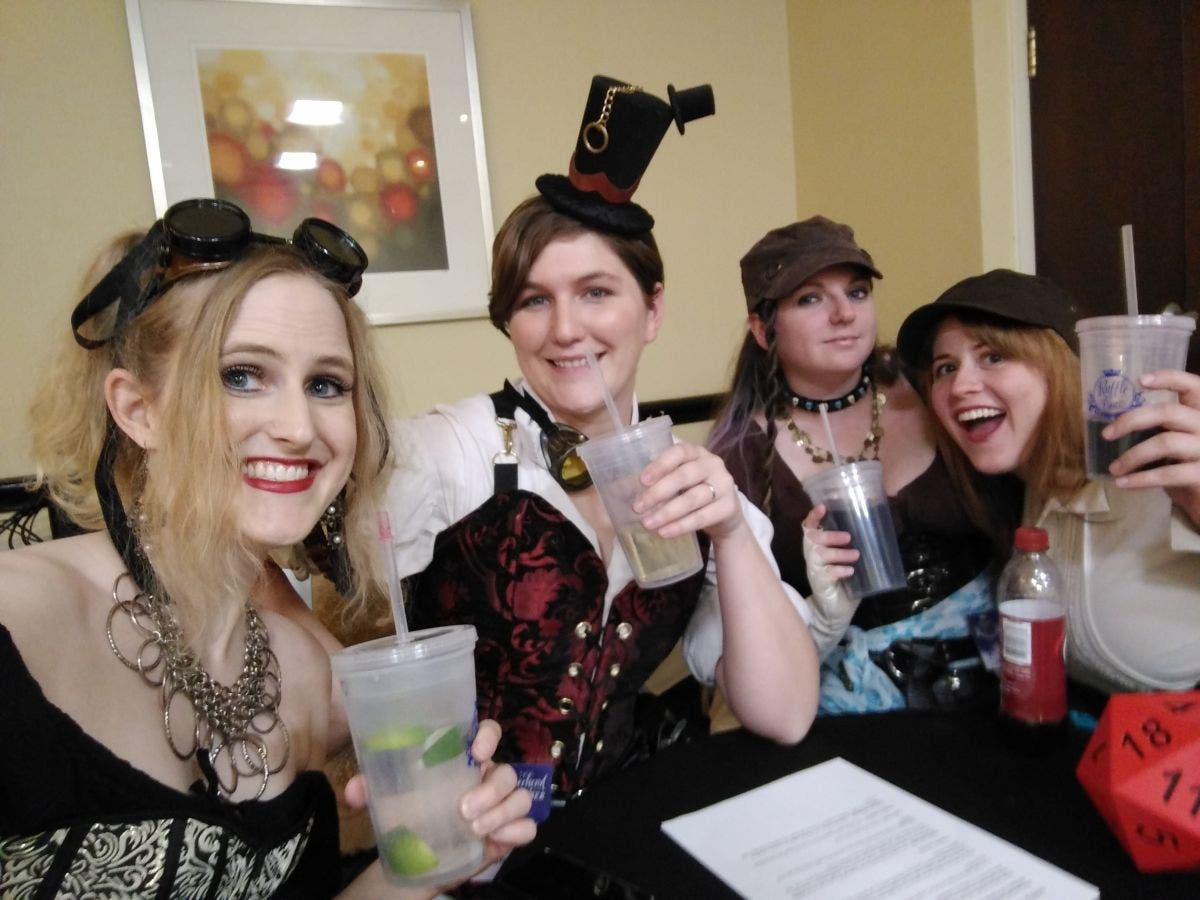 The band, which began rehearsing together in late 2012 and performed in public together for the first time in May of 2013, consists of four members: Flint Locke, "Lucky" Annie LeBlanc, Madame Rouge, and Saber Tompson. While all of the ladies come from a "pirate" background, they embrace a wide range of subcultures, offering musical tributes to everything from steampunk to anime.
