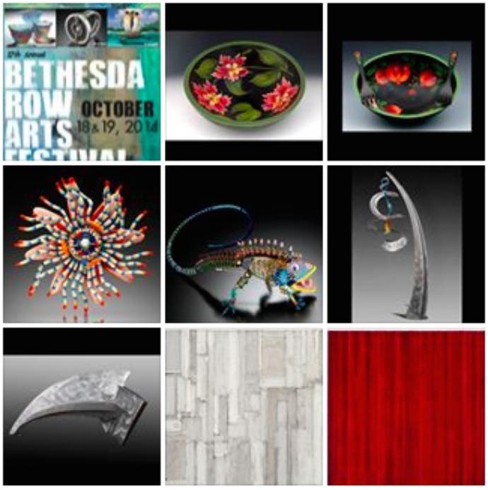 The Bethesda Row Arts Festival will feature arts and crafts for sale from over 190 museum-quality artists.