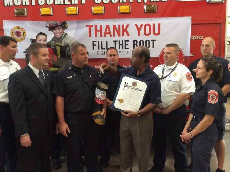 Montgomery County Fire and Rescue Services members are out on the streets collecting donations for the Muscular Dystrophy Association through the annual Fill the Boot campaign.