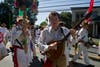 "I brought my cat, Pud," Gould said, as Pud pulled on his leash, trying to get out of the way of an overly interested dog. "We've been here since the beginning of the parade, and he walked down the parade route following some of the parade participants. After 11 years, he's gotten used to pretty much everything… so when the fire trucks and horns and the horses come by, he's relatively calm."