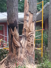 Master Carver,Sculptor,Author Jim Calder is transforming a twin trunk tree into another Piece of Takoma Park Art