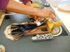 Lachman often finds objects for her art while walking her dog; and her husband finds pieces like car parts when biking to work. She said much of her work reflects the energy and chaos of the fast-paced life people have.