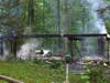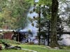 The county's fire dispatch received a call at 9:17 a.m. from the home in the unit block of Candlestick Drive in Green Spring Valley. The fire began in the garage and spread to the home. The fire department sent 25 trucks to the scene. There are no reports of injuries, and the cause of the fire is still unknown.