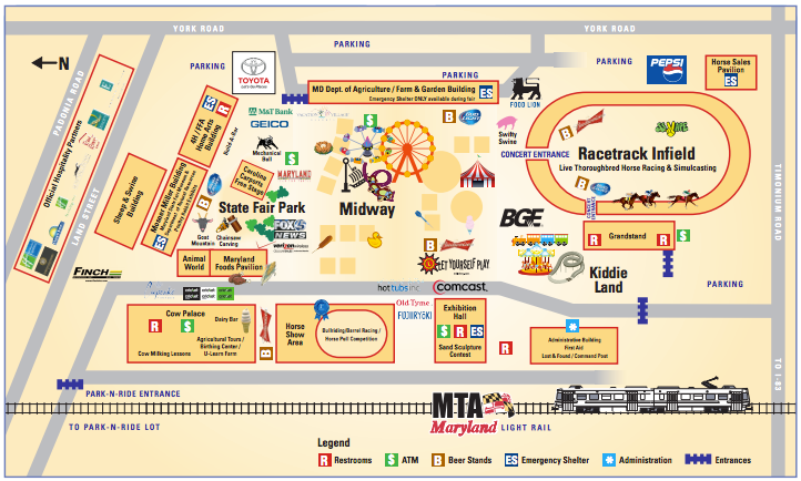 Limited parking is available at the fairgrounds for $5. Free parking is available at the Park and Ride on Deereco Road west of the fairgrounds on a first-come, first-served basis. Handicapped parking is available. Taking the light rail is recommended.