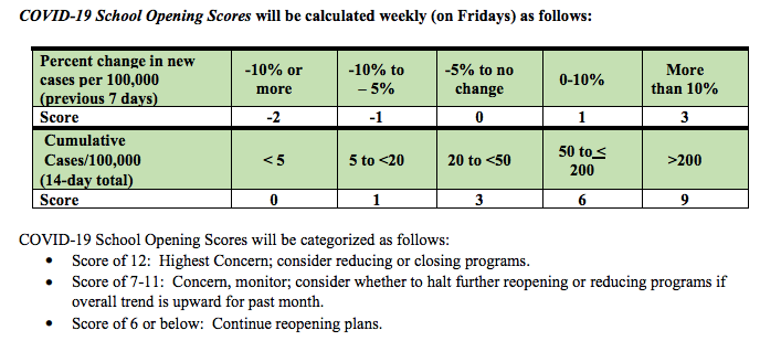 The number of new and overall coronavirus cases in Baltimore County are metrics that can trigger the closure of programs, according to the reopening guide from Baltimore County Public Schools.