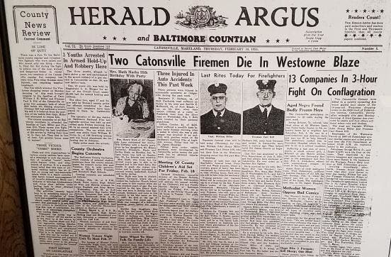 Two firefighters were remembered for their sacrifice before Fallen Heroes Day began in 1986: Captain William J. Miller and Firefighter Carl S. Dill of the Catonsville station died in February 1955 battling a blaze at the Westgate Shopping Center in Catonsville.