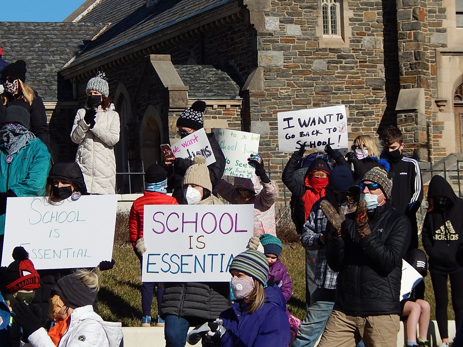 "It has been 10 months since school has been closed," said Carol Vidal, M.D., Ph.D., one of the speakers at Saturday's rally. "I'm here because no one at BCPS has been returning my emails."