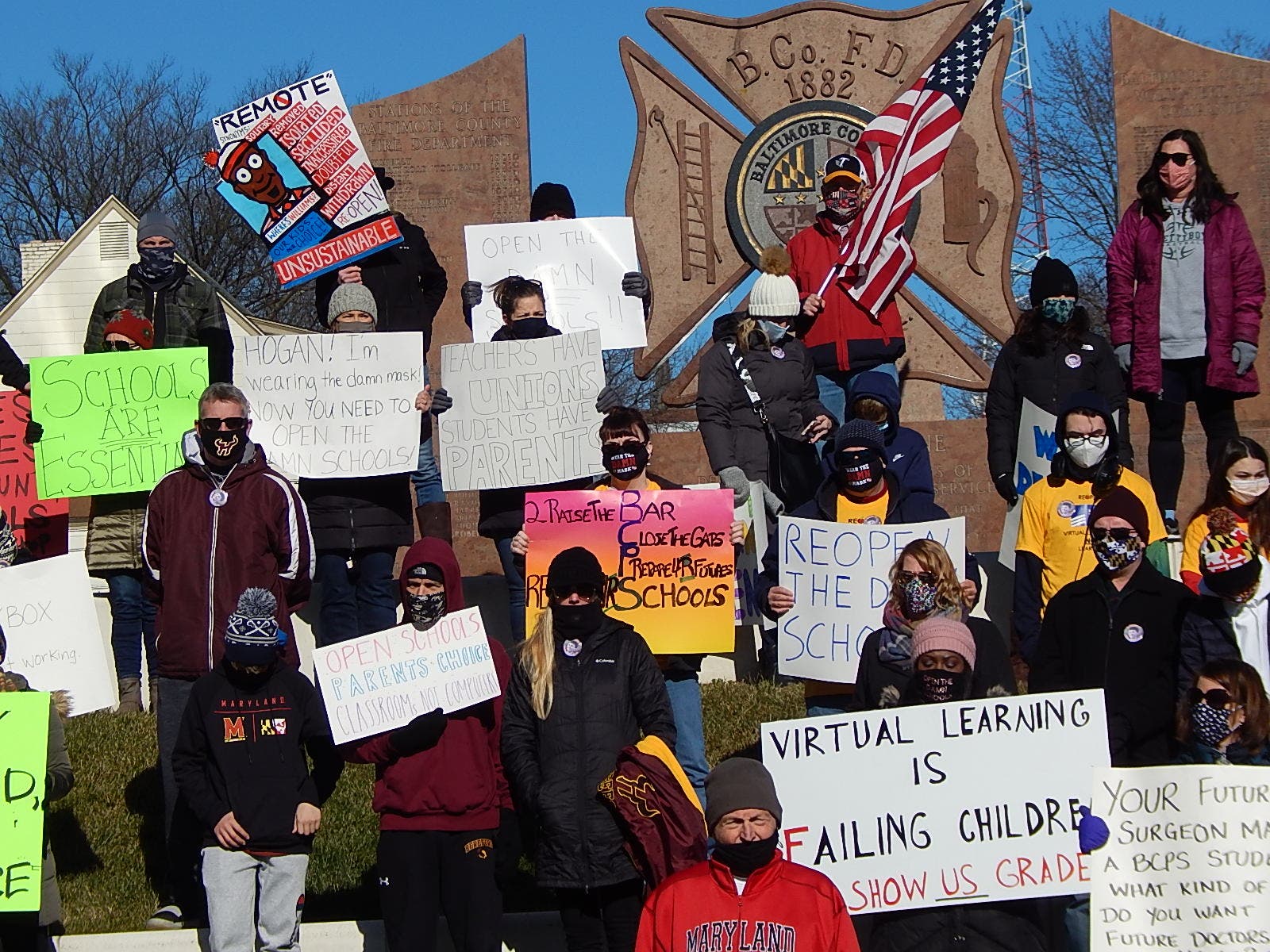 The rally was organized by the group Reopen Baltimore County Public Schools.