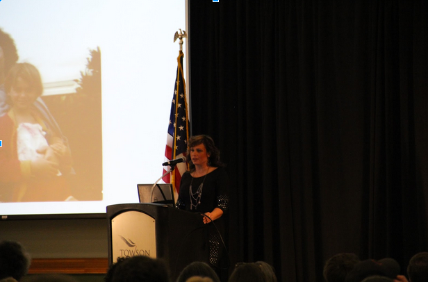 Pictured, Jen Spry, the conference’s keynote speaker, told the audience that a neighbor trafficked her for sex when she was a child. “This happens in neighborhoods like yours.” Photo Credit: Lisa Driscoll, Capital News Service.