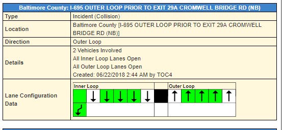 BALTIMORE COUNTY, MD โ Lanes have reopened after a crash that closed Interstate 695 near Towson for hours early Friday morning. The collision happened on the outer loop of I-695 at Cromwell Bridge Road, the Maryland State Highway Administration reported.