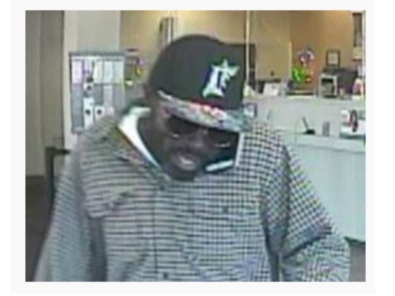 "Witnesses describe him as a black man in his 40s, who is about 5’9” tall and has a salt and pepper beard. He wears a baseball cap, long-sleeved shirt/hooded sweatshirt and aviator sunglasses. While talking on his cell phone, the suspect approaches the counter, hands the bank employee a note announcing an armed robbery, and demands money. After receiving money, he flees the location on foot," according to the FBI.