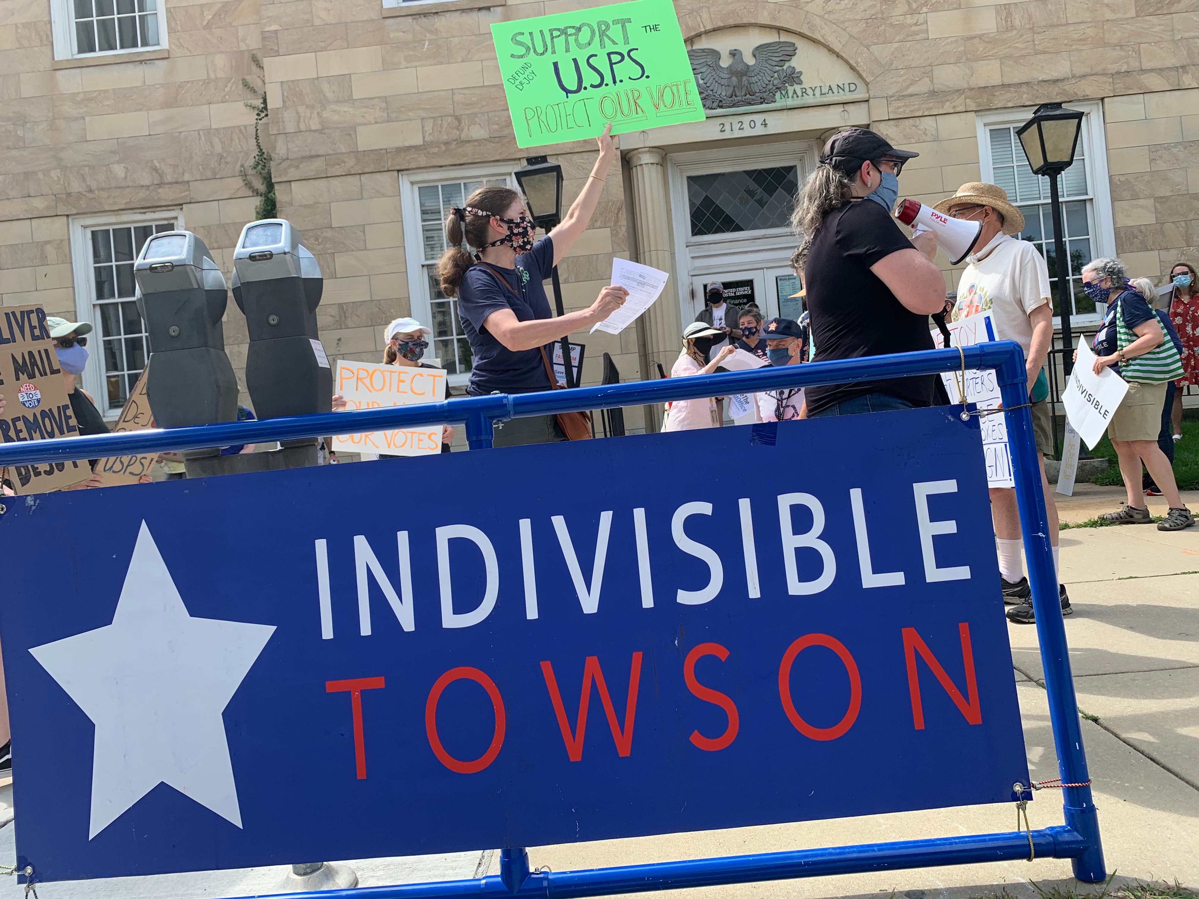 Victoria Vestrich, one of the administrators of Indivisible Towson, said changes in the postal service were impacting her on both professional and personal levels.