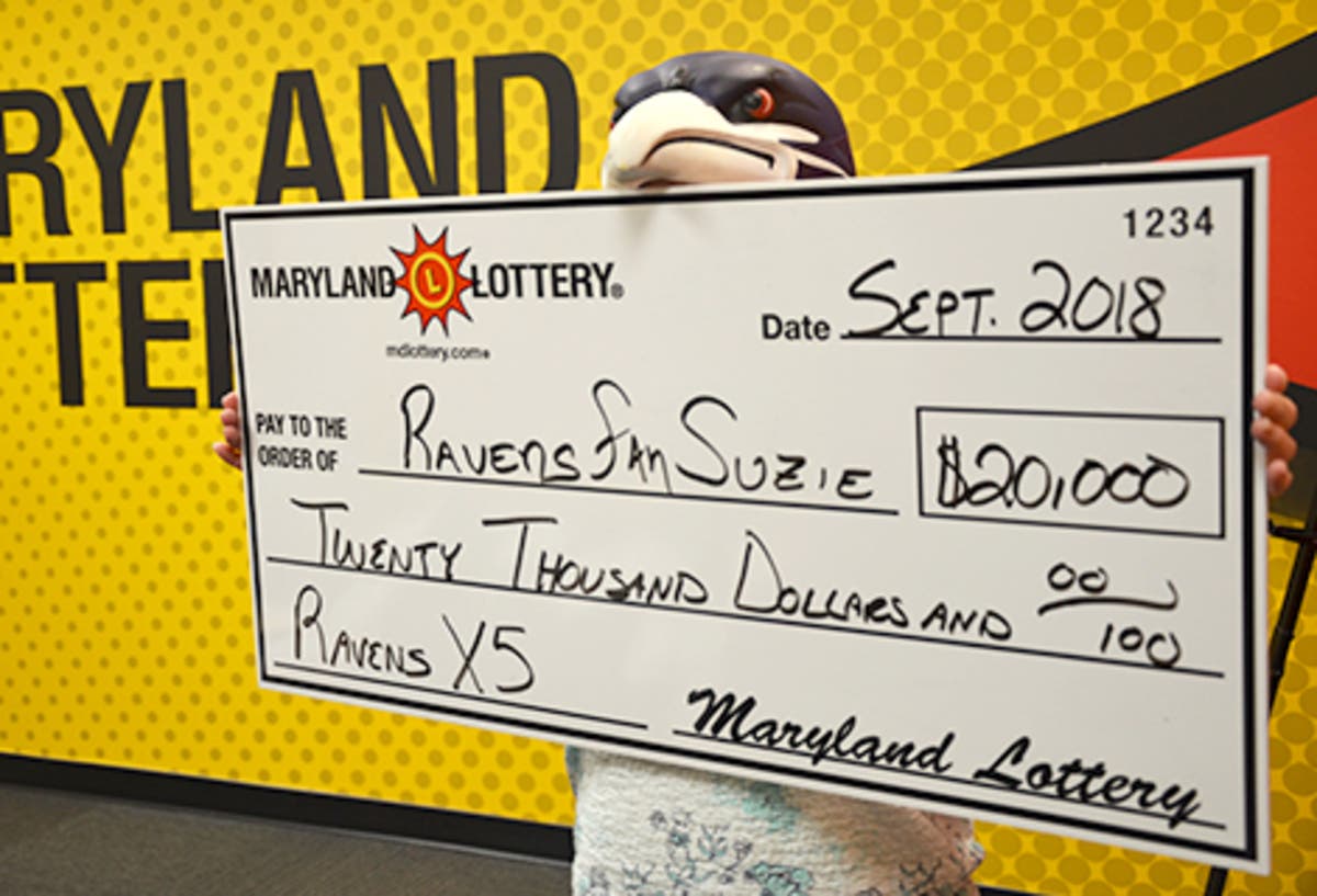 TOWSON, MD — A purchase resulted in a $20,000 win for one Towson shopper this week. While at the Weis Market on Putty Hill Avenue, a woman who calls herself "Ravens Fan Suzie" bought a Ravens-themed scratch-off ticket.