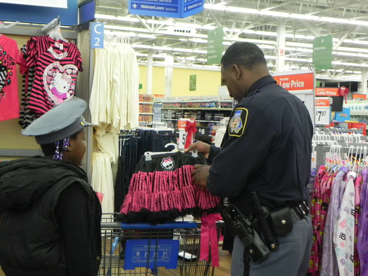 Like a lot of police officers, one of the main reasons I chose this career was to make a positive impact on people’s lives. Looking back over my years on the force, one of the real highlights for me has been the Shop with a Cop program. For the past 12 years, one Saturday every December some disadvantaged children are assigned a police officer who picks them up in their squad car and accompanies them on a Christmas shopping trip to the Hunt Valley Walmart followed by a nice meal at Outback Steakhouse.