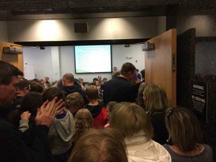 Citizens spilled out of the Baltimore County Planning Board meeting on March 19. Photo Credit: West Towson.