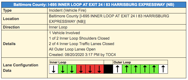 Vehicle Fire On I-695 Snarls Traffic Near I-83 Interchange