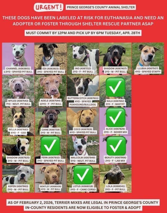 Prince George's County Animal Shelter post: 2/12/26 7pm: