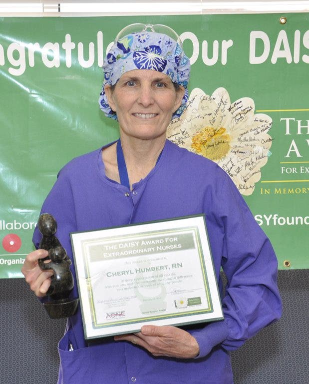 Cheryl Humbert, R.N., was recently presented with Carroll Hospital Center’s February DAISY Award. A nurse at the hospital for 38 years, Humbert was nominated for her exceptional care and for her compassion towards a fellow co-worker following a tragic loss.