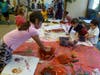 Families participated in activities at 11 different stations, including: fruit and vegetable bingo, a printmaking project where fruits and vegetables doubled as stamps to decorate homemade wrapping paper, and a farmer's market where children had the opportunity to "buy" all of the ingredients for a recipe with play money.