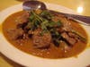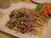 Next up, Northern Pork, or Nam Sote ($7.50). Nam Sote consists of ground pork quickly heated to a sizzle, with red onion, cilantro and peanuts in a spicy citrus-ginger dressing. What the Nam Sote lacked in visual appeal โ our table was split between elegant simplicity and "I thought it would be slices of pork, not crumbles." โ all three diners agreed on its excellent taste and remarked on how good and bright in flavor the dressing was.